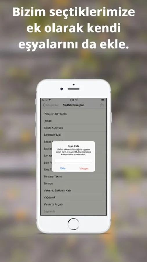 Eşya listemiz oldukça büyük ve her ihtiyacınızı düşündük. Yine de almayı planladığınız eşyayı listemizde bulamazsanız diye eşya ekleme seçeneği de ekledik. İstediğiniz eşyanın ismini girmeniz yeterli, bundan sonra o eşyayı seçtiğiniz kategorideki diğer eşyalar arasında göreceksiniz.