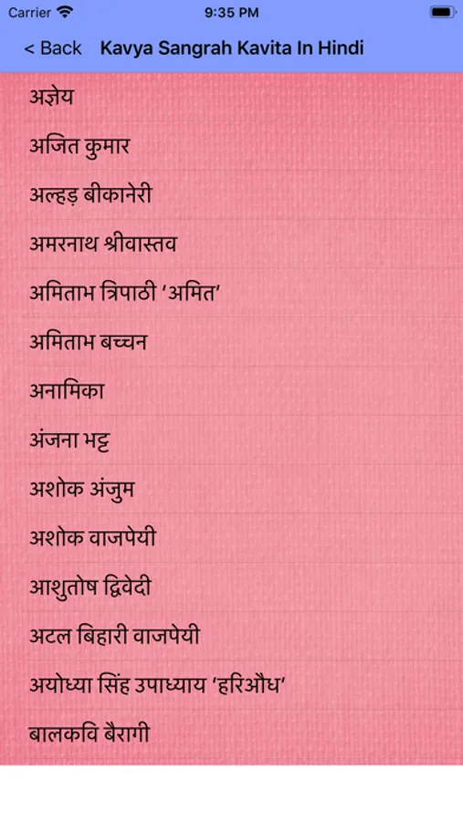 All the poets / kavi and their poems / kavita are beautifully organized.