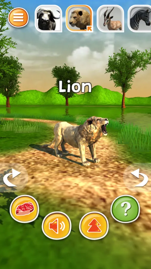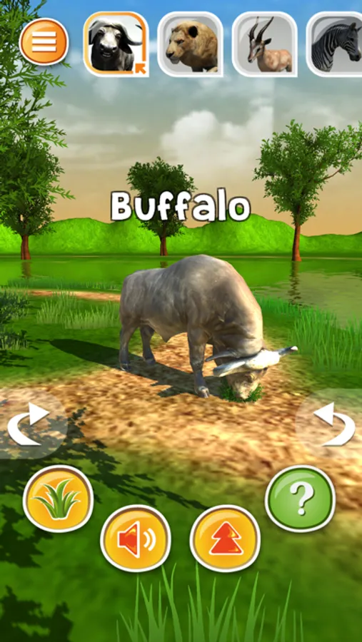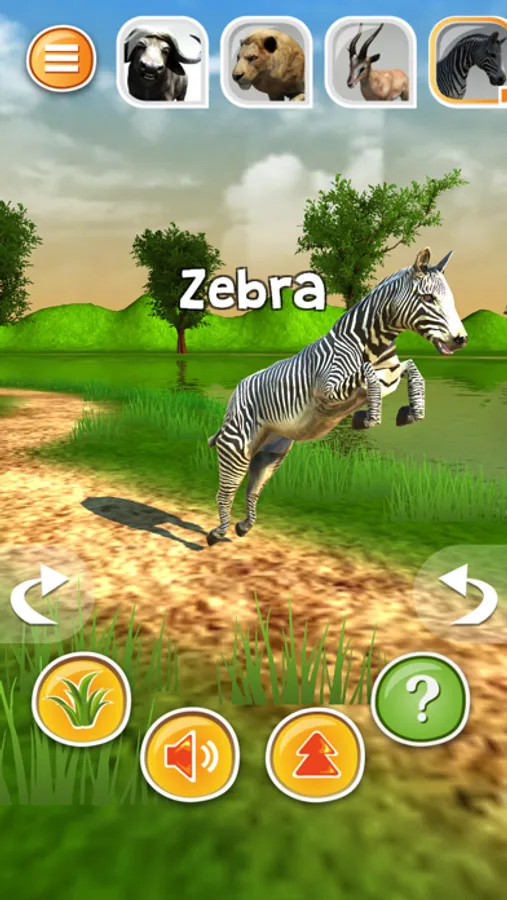 Select your character from 5 different safari animals including Lion, Buffalo, Giraffe, Gazelle, and Zebra,