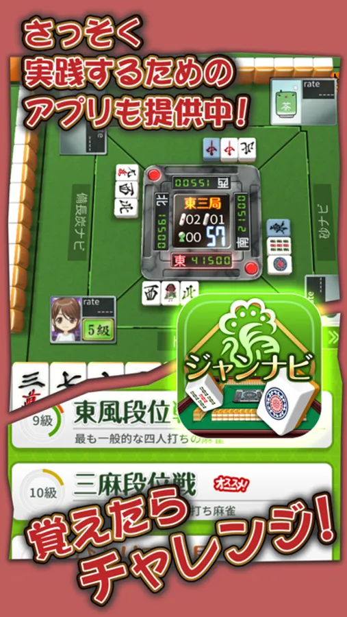 このアプリで麻雀ルールを覚えたら、連携している麻雀アプリですぐに実践することが出来ます!