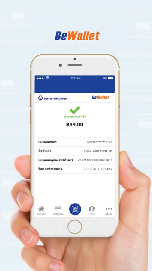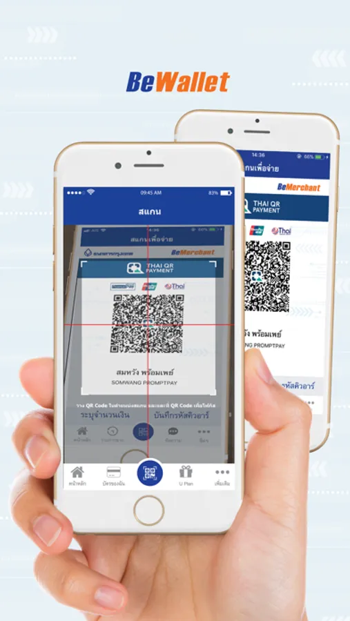 BeWallet สะดวก รวดเร็ว ทุกการใช้จ่าย เพียงเปิดแอพ และสแกน QR Code เพื่อใช้จ่ายผ่านบัตร โดยไม่ต้องพกเงินสดหรือบัตร BeWallet ปลอดภัย มั่นใจ ด้วยรหัสส่วนตัว เช็คยอดได้ทุกครั้งที่ใช้จ่าย
