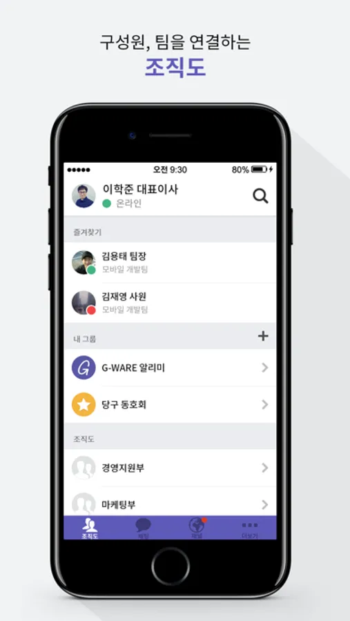 - 업무용 채팅으로 빠르고 간편하게 커뮤니케이션 할 수 있습니다.