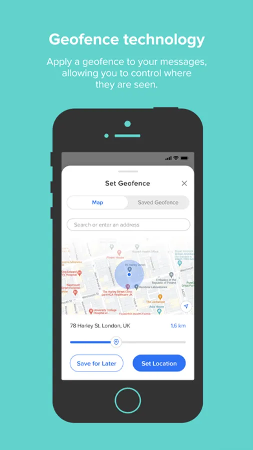 - Geofence technology: Apply a geofence to your messages, allowing you to control where and when they are viewed.