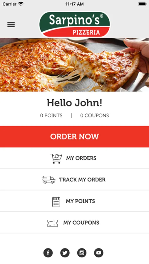 The official mobile app for Sarpino's Pizzeria is now here, bringing you the ability to order from all Sarpino's Pizzeria locations. Ordering from Sarpino's Pizzeria is as easy as eating a Pizza! With this app you can track your loyalty points, view your coupons, pay with your gift card and order your favorite food online.