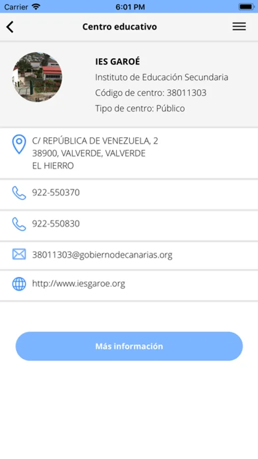 - Centros educativos. Se podrá consultar la información relacionada con los centros educativos de Canarias y además se facilitará la suscripción a los canales de noticias y novedades de los centros públicos.
