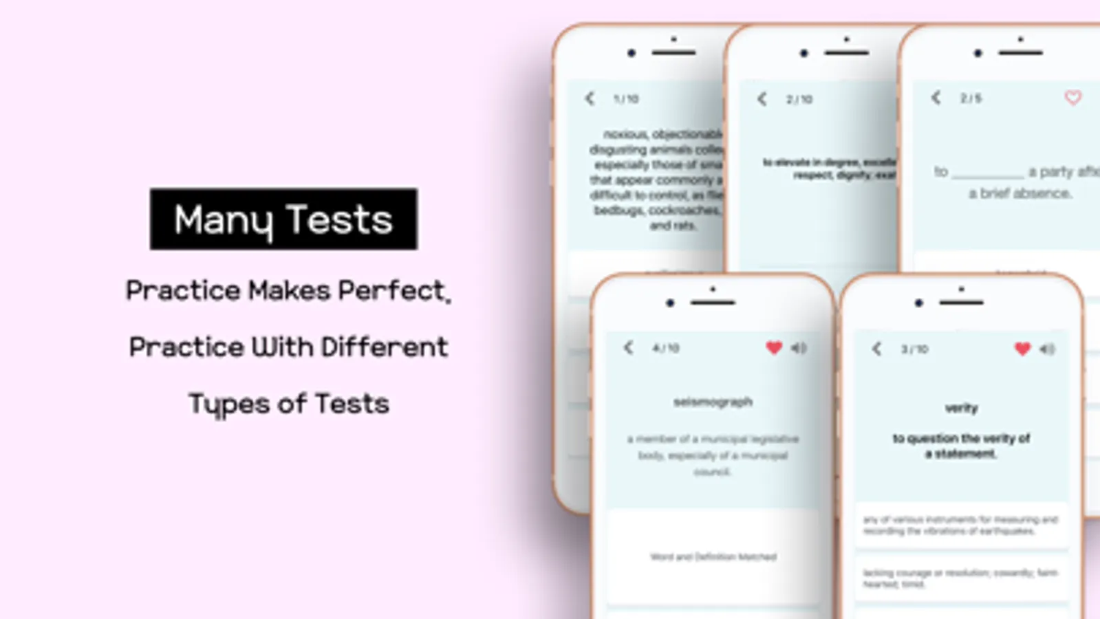 6. MANY TESTS. It’s very important to test if you actually memorize the word or not. So there are multiple tests, spelling test, fill in the blank test and many more to test yourself. When you get a word wrong during these tests, the app will remember that particular word and it will show up on Test Results tab. This tab will keep track of all the words you had hard time remembering.