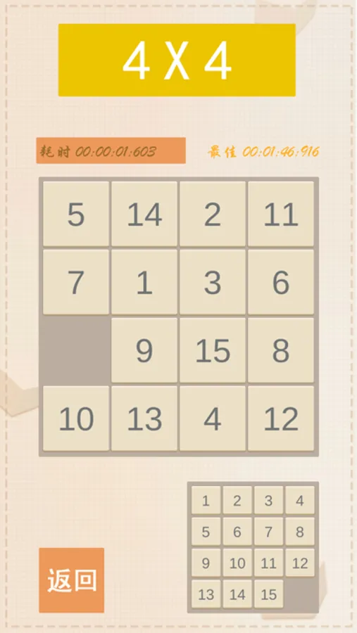 游戏分为3x3,4x4,5x5,6x6四个难度级别,不同难度对应不同最佳成绩,还不赶快来挑战?