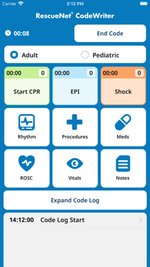 The ZOLL RescueNet CodeWriter documenter is an easy-to-use application for mobile phones or tablets that simplifies code data documentation. When used with RescueNet CaseReview, RescueNet CodeWriter not only captures essential code data, but also helps ensure documentation accuracy with options such as timer, vitals and key event buttons. Simply launch the app and tap the Start New Code button to get started.*