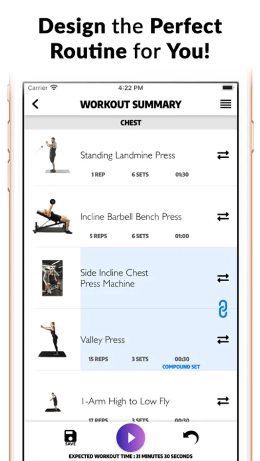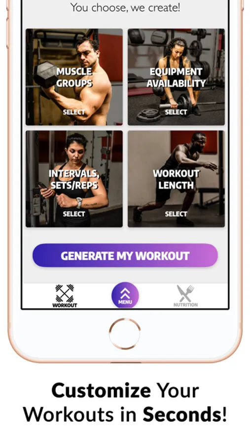 -Within seconds, you will get a full optimal workout randomly generated for you based off your customized settings!
