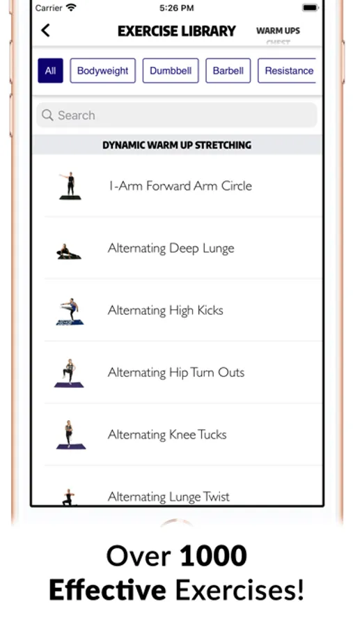 -Main: Bodyweight, Dumbbell, Barbell, Resistance Band, Kettlebell, Cable, Medicine Ball, Machine