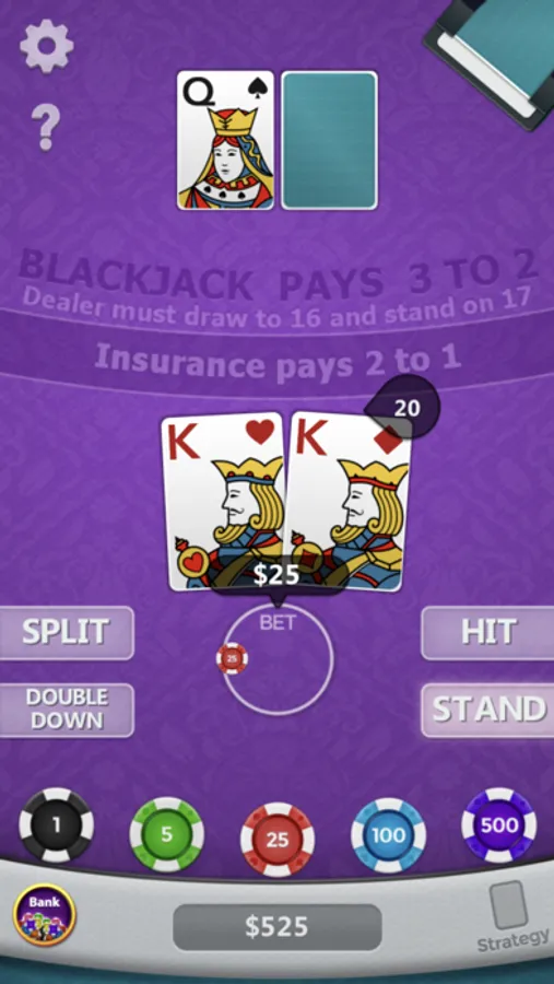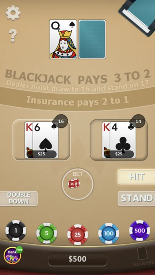 - Double Down, Splits, Insurance and Surrender for an authentic Blackjack experience.