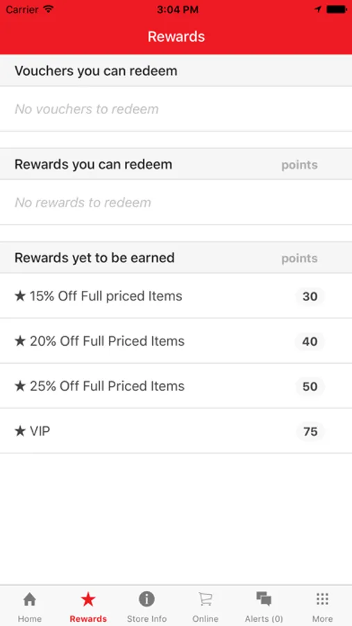 * Check available rewards across all participating stores you have registered with