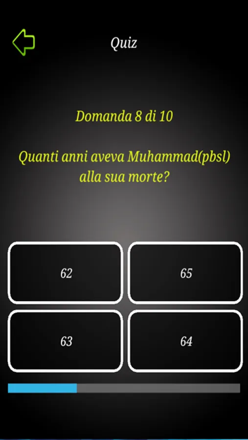 Quiz con domande sull'Islam con la possibilità di registrate il proprio risultato e di confrontarsi con gli altri.