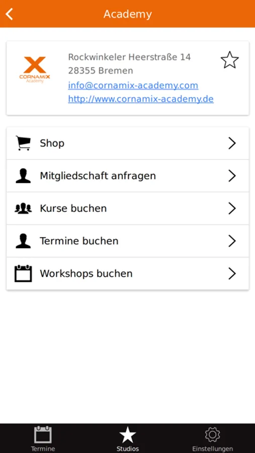 Die App zeigt dir die Details zur Athletes Box und Cornamix Academy. Als bestätigtes Mitglied in der Athletes Box kannst du dich direkt und einfach für die Kurse anmelden.