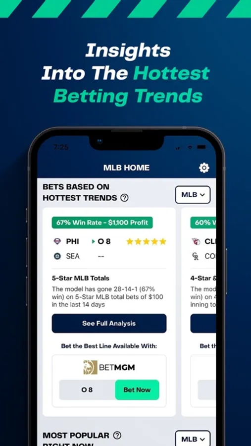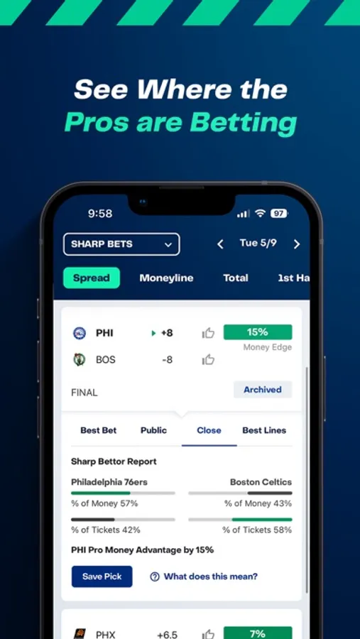 Gain access to powerful analytics including data-backed best bets, meaningful team and model trends and real-time public, sharp and live movement data.