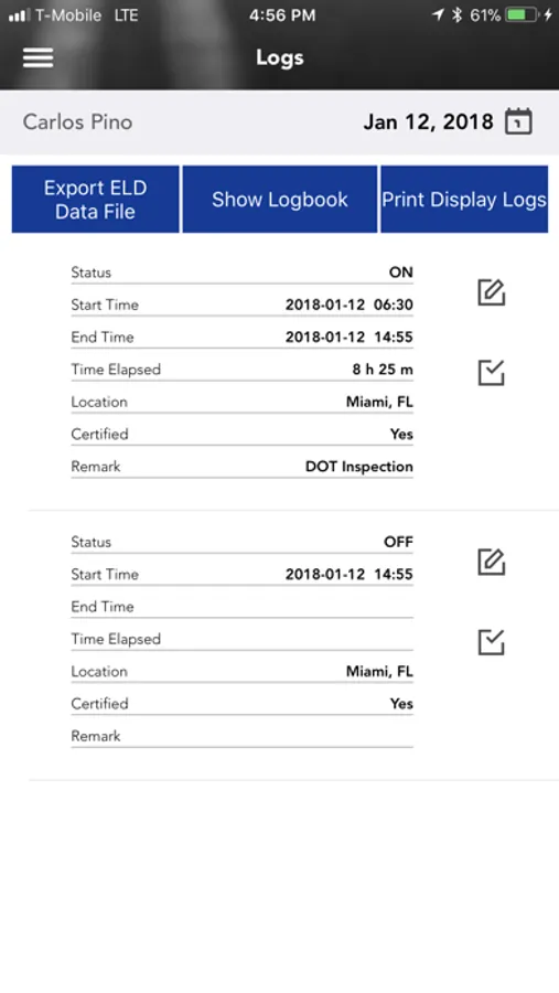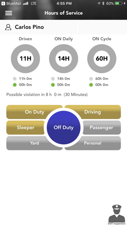 DOT FMCSA self-compliant application to record driver duty status and meet the following regulations: