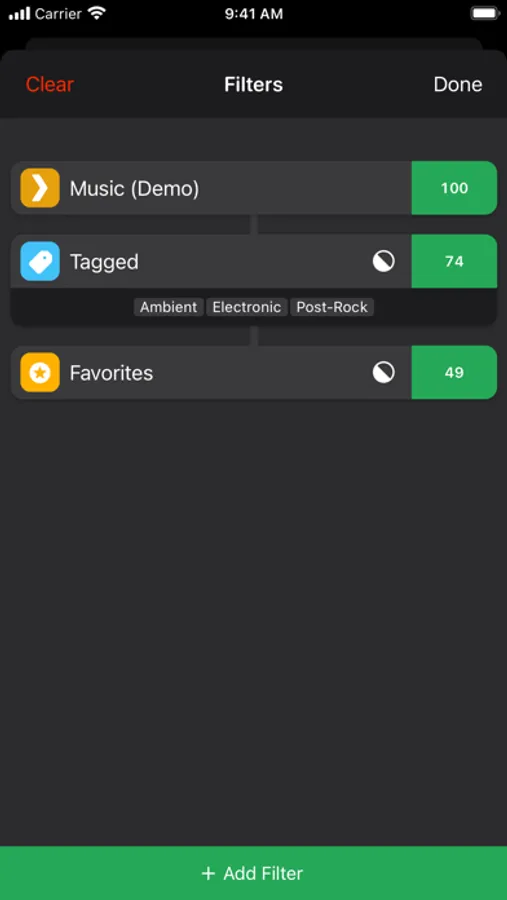 - Refine your library by adding one or more filters