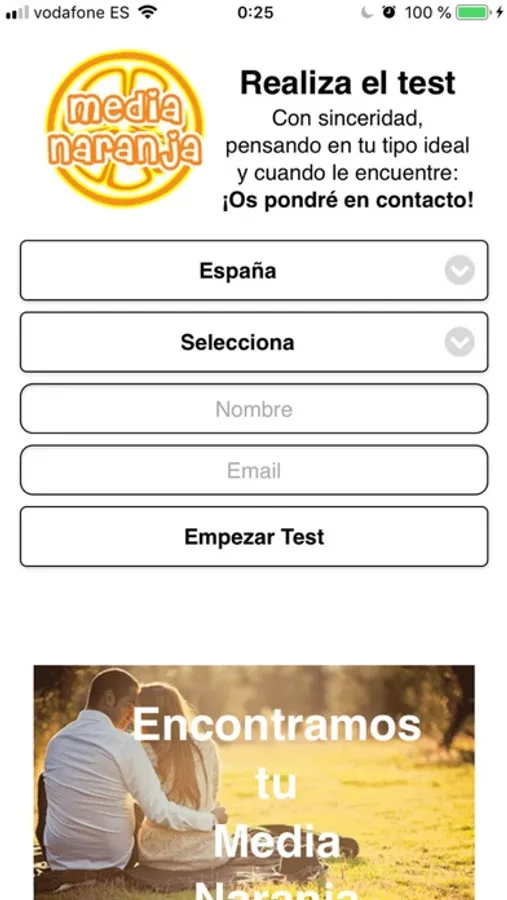 Realiza el test en 3 pasos de forma sincera y pensando en tu pareja ideal. Cuando alguien realice el test y sea 100% compatible contigo, os enviaré un email a cada uno y: ¡os pondré en contacto!