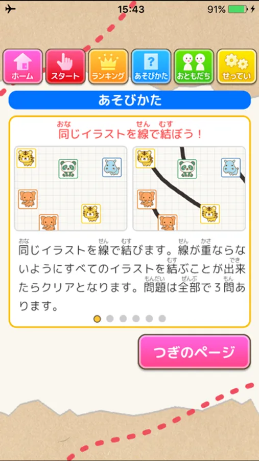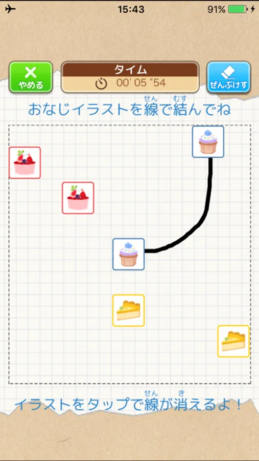 線同士が重ならないようにすべてのイラストを結ぶことが出来たらクリアとなります。