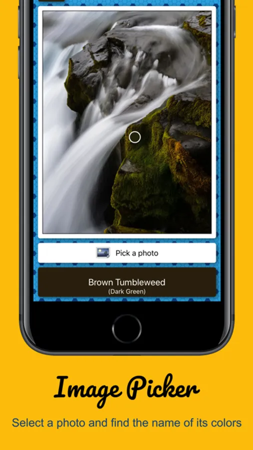 - Image Picker: You can pick a photo from your library and find the color names using the circle indicator.