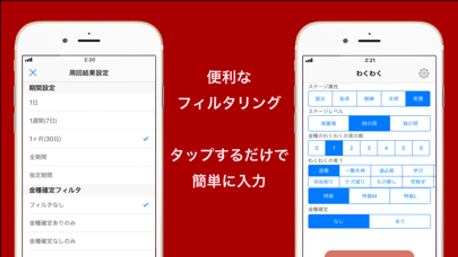 1クエストごとにアプリを開いて、出たわくわくの実の数と種類をタップするだけ。