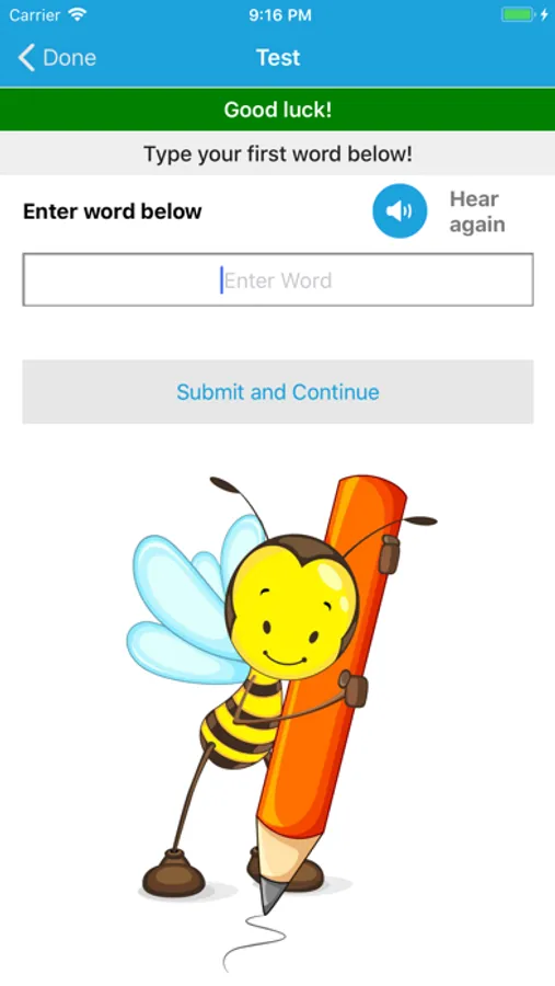 This app will make it easy to practice spelling words. No entering words or recording pronunciations needed - we entered the words and recorded the pronunciations for you!