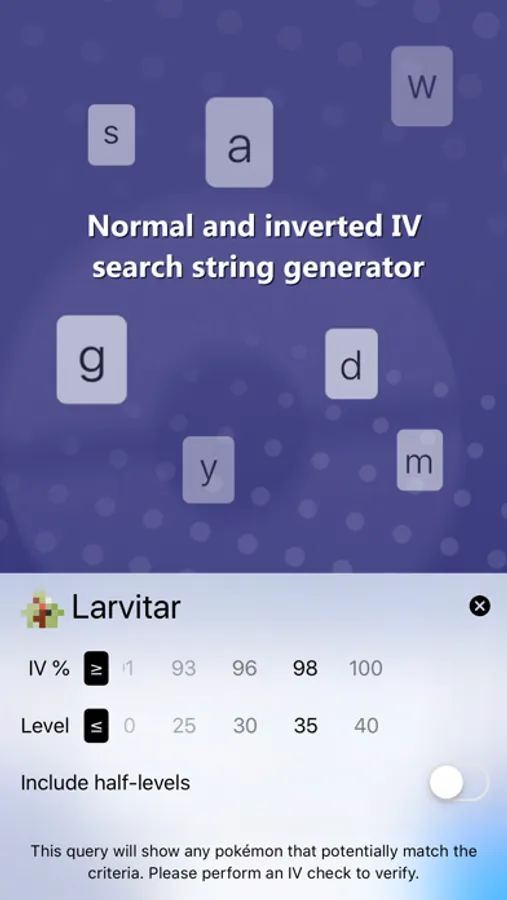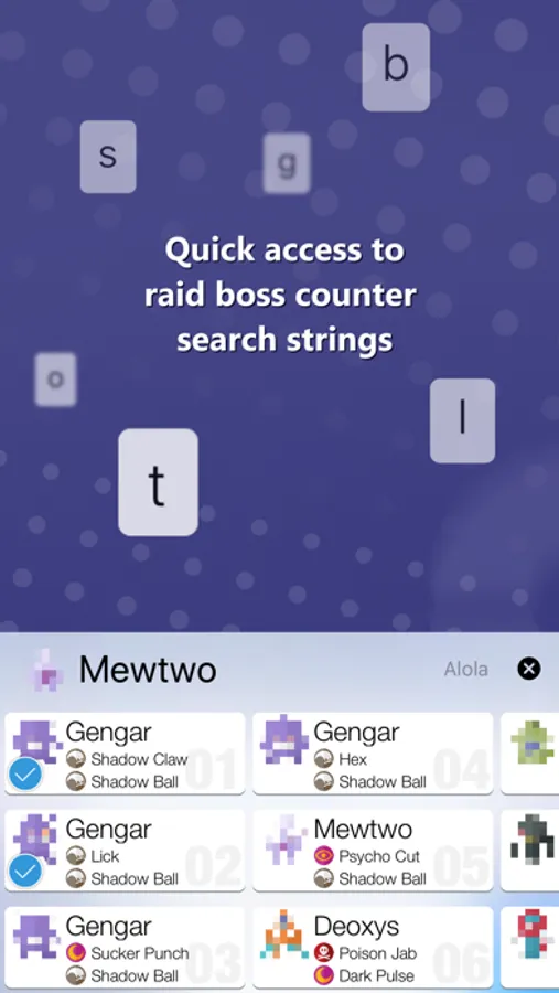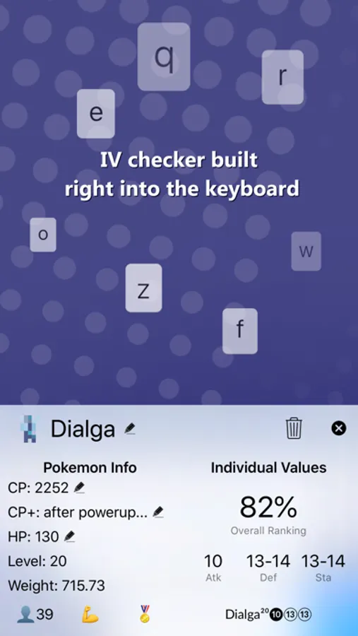 PokéKeys is a third-party app made by fans and is not affiliated with the Pokémon brand, Niantic, Pokémon GO, Nintendo or The Pokémon Company.