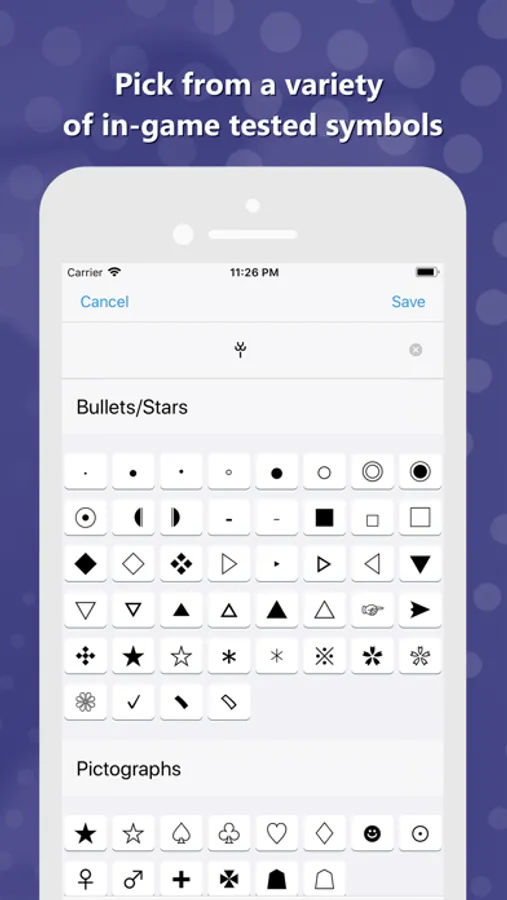 • Symbols layout with various characters including ⓿-⓴, ⓪-㊿ and more
