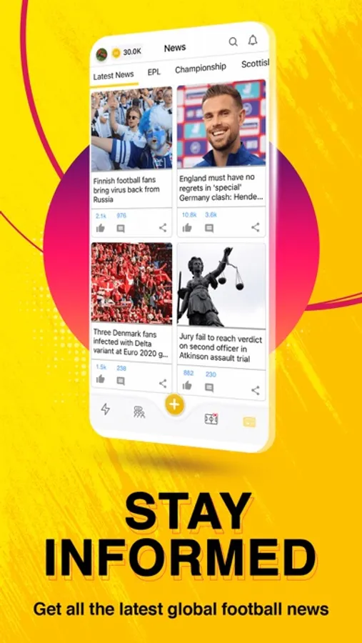 Personalise your home screen with football content from your favourite club. Interact with fans and get instant notifications of the latest posts from them.