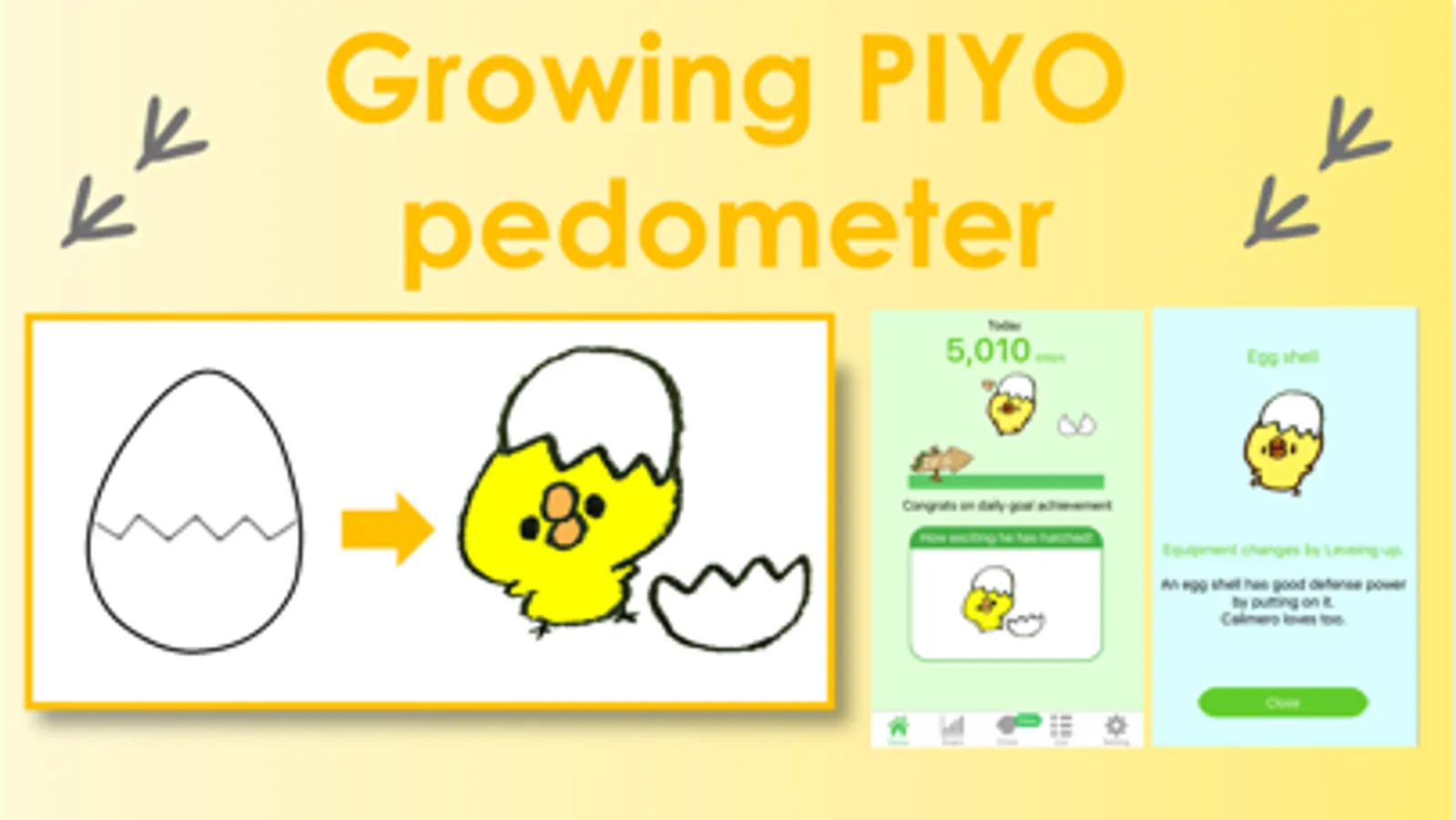 ヒヨコ歩数計 - PIYO Pedometer - is a convenient step counter app that the chick will grow up by your daily step and login count!!