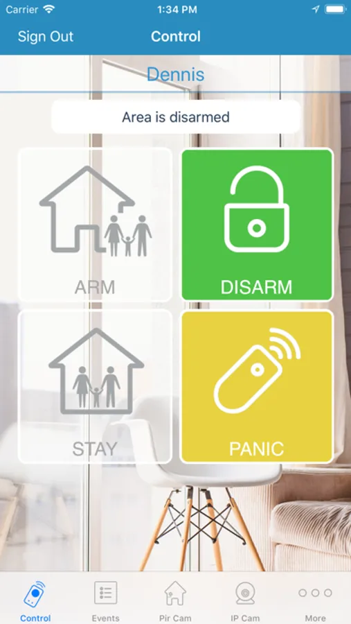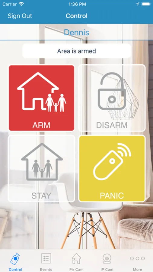 • Control panel state (Arm, Disarm...)