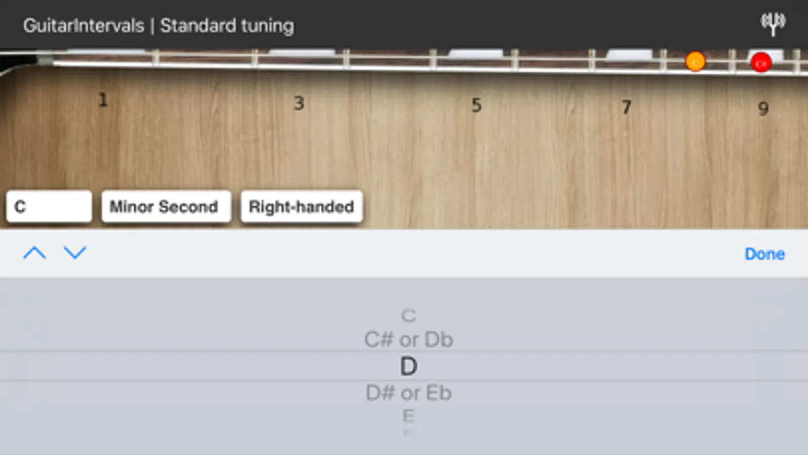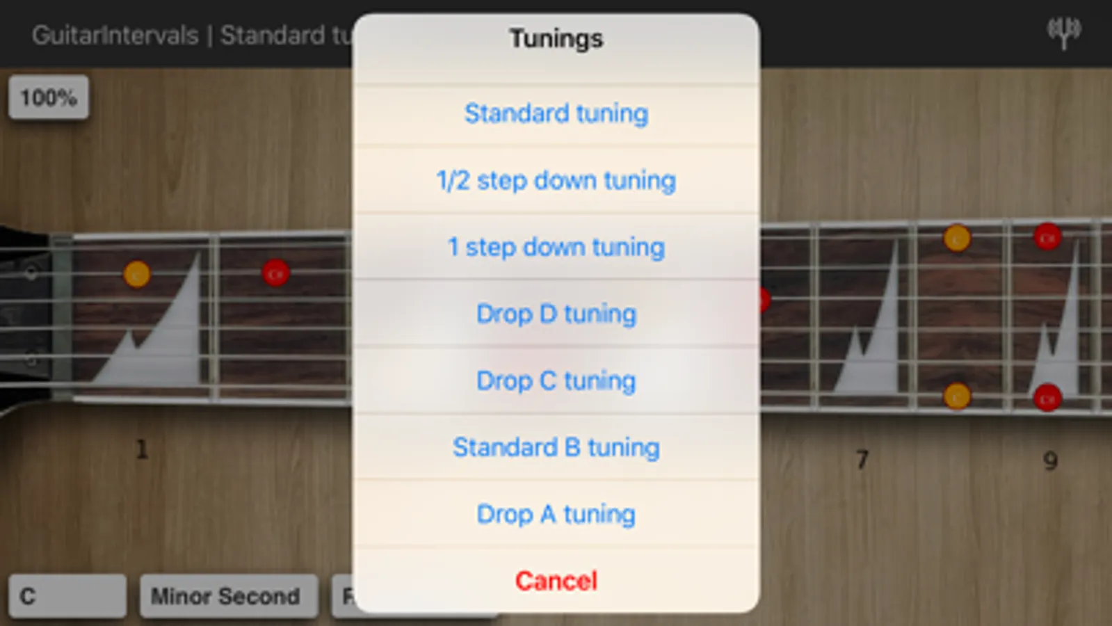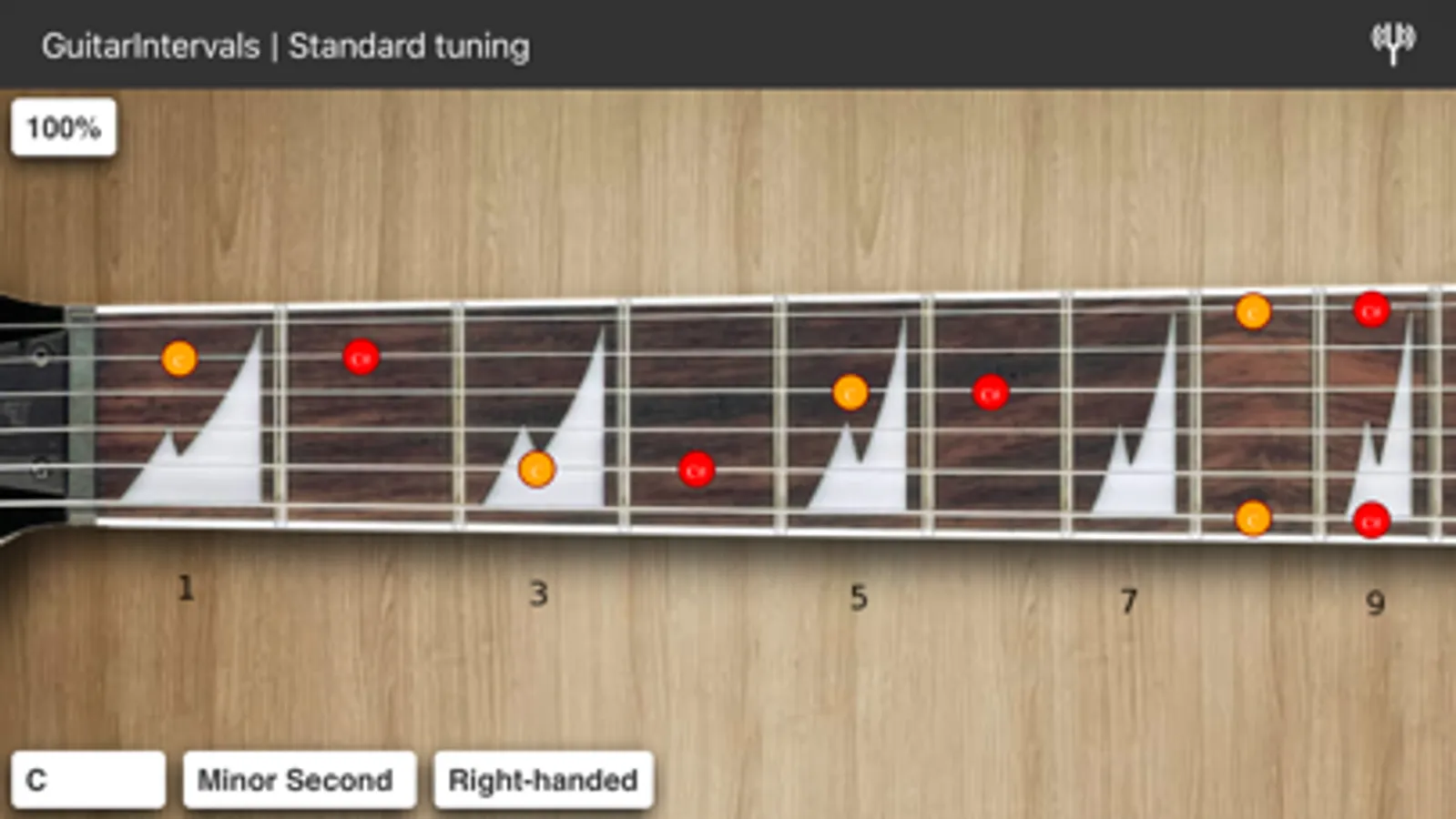 This is an app to learn intervals on guitar neck. Click on the note to play it. It has intervals for standard and some drop tunings.