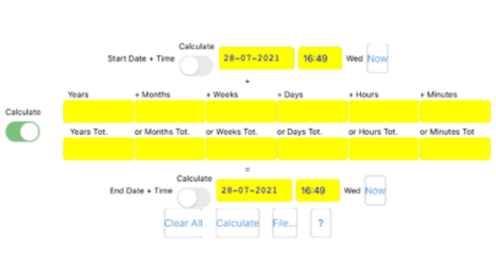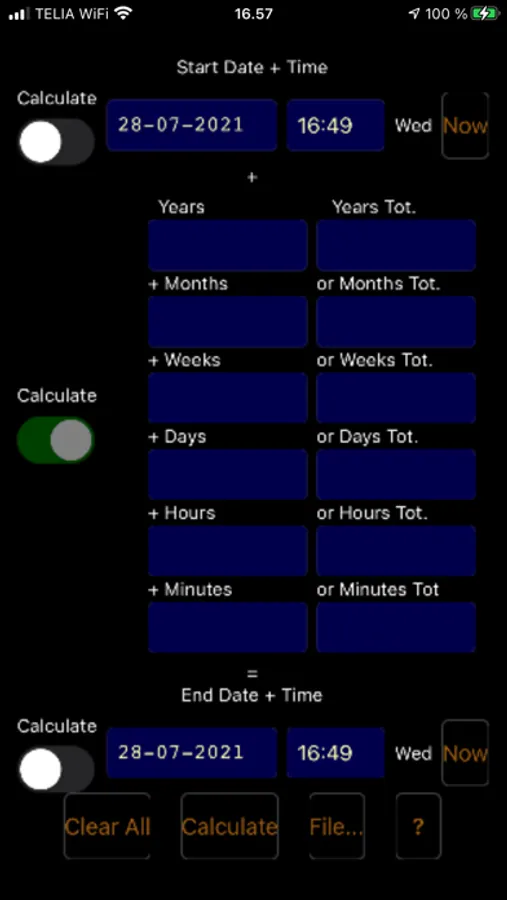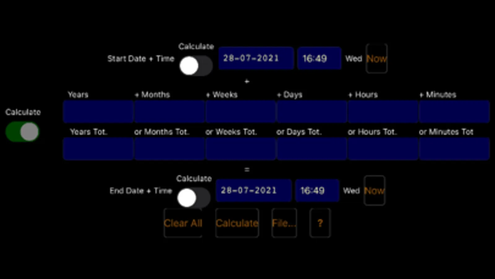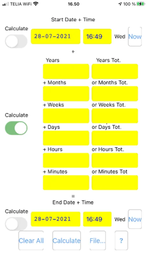 2. From time+date and time span calculates a time+date.