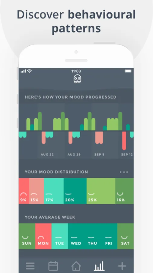 Life is about ups and downs and can sometimes leave you confused. If you want to understand your emotions and mood, self-awareness is key. Moodistory is here to support you in doing that! It's a mood tracker for self-improvement to foster your mental health, happiness and well-being. It is a supporting tool for coping with mood swings, bipolar disorders, anxiety and depression. Your mental well-being, your mental health, is Moodistory’s mission. Selfcare and empowerment are the cornerstones.