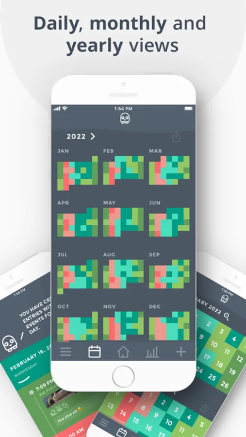 • Mood calendar: Interactive yearly, monthly and daily calendar views
