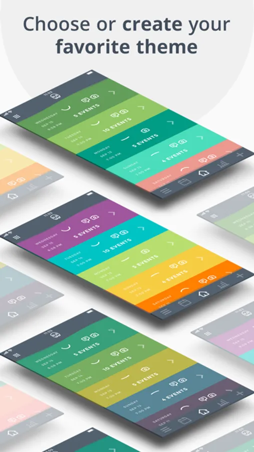 • Themes: Choose from a collection of carefully composed color palettes or create your own theme and select every single color yourself