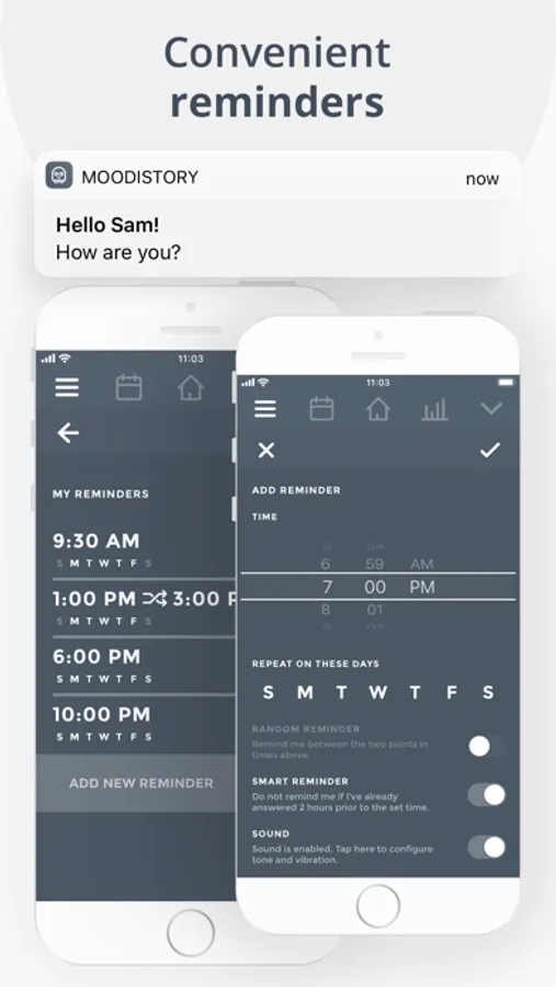 • Set up Face ID/Touch ID/Passcode to keep your mood data safe from others
