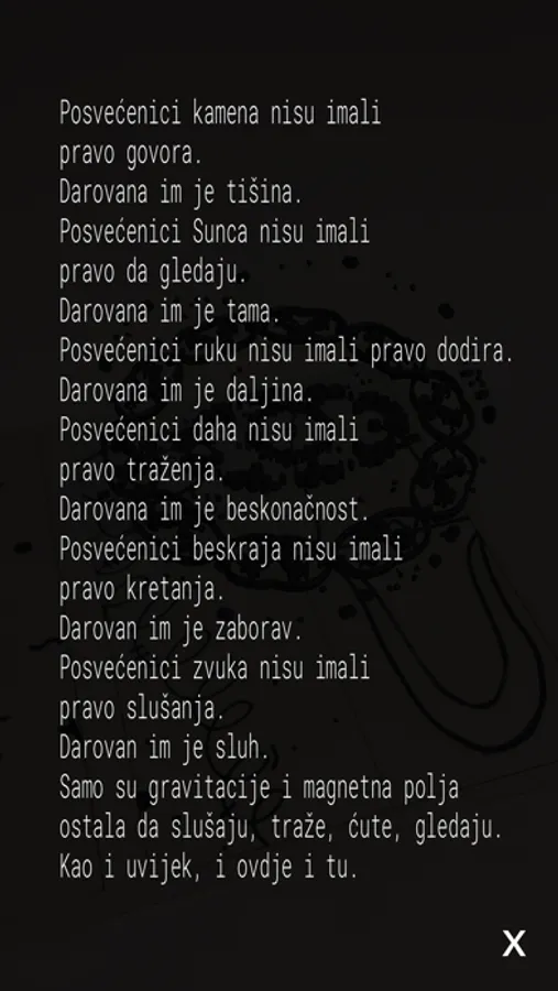 The app makes it possible to hear the poem from the very mouth and instrument of its writer. During each listening, the page is enhanced by a visual poem escaping from the paper.