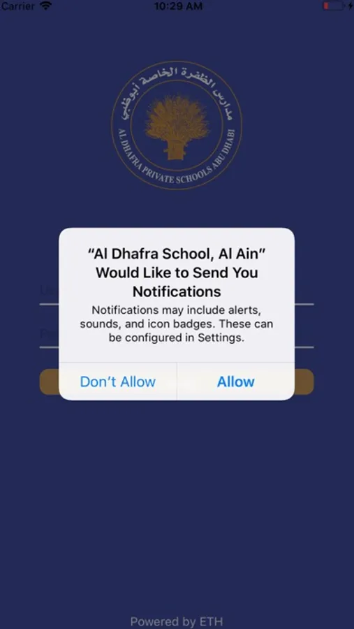 Mobile interface for parents of students studying in Al Dhafra Private Schools, Abu Dhabi, for accessing information about their children.