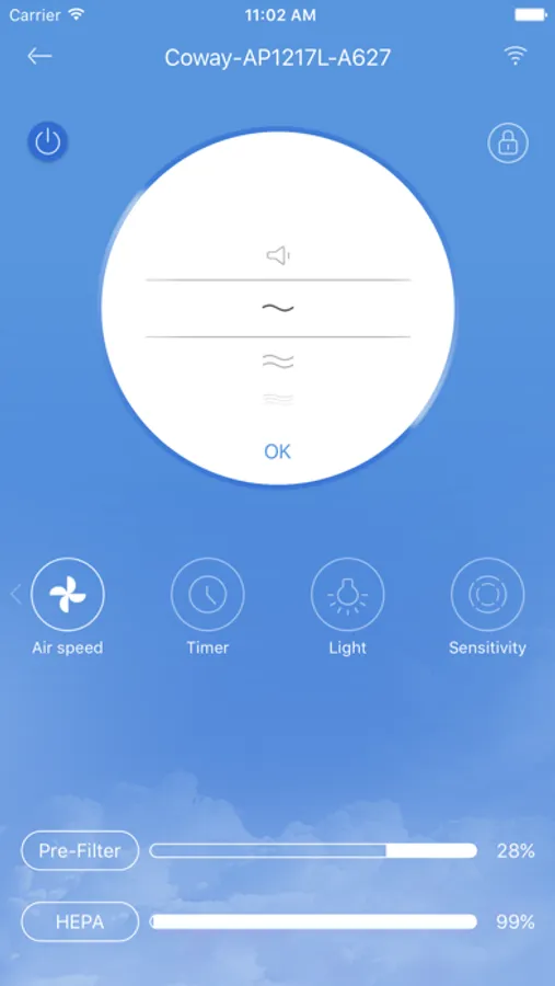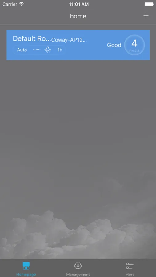 English: Not only controlling thr air purifier, this app also notifies the indoor PM2.5 status, remaining filter life time, and allows the user to configure the scene algorithm manually.