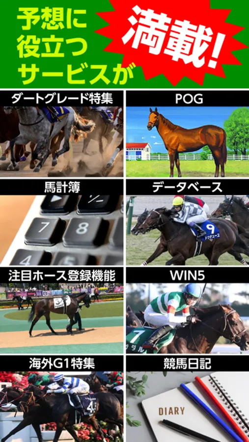 競馬初心者から上級者まで、スポーツ派から予想派、そして投資派まで、競馬に関するあらゆるニーズに応えたサービスをラインアップしています。