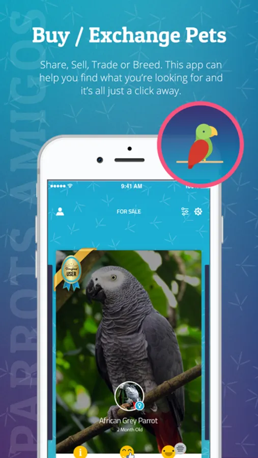 Looking for a parrot? Trying to sell a bird? Want to connect with likeminded passionate bird lovers? Parrots Amigos is your solution! An ultra-secure & highly reliable pet app where bird’s lover can interact each other around the world in a friendly environment. We made this pet app so the bird pet lovers can get a friendly place for bird pet selling, bird pet trading, bird pet breeding and general bird parrot discussions and information.