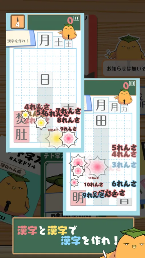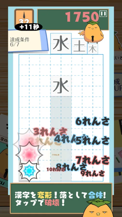 うまく漢字を積み上げ、大連鎖を狙いましょう!