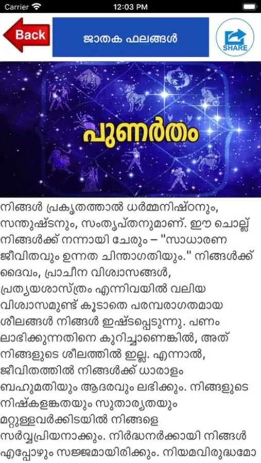 Malayalam Horoscope is free app to read your horoscope daily in Malayalam and English languages. You can also ready each stars character on this app. We also provide free service to get your full horoscope on email by just fill your details in our app.