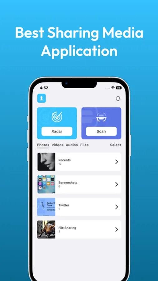 Like transfer photos, It’s also very easy to send videos even share large video files. Select Videos and Share it in just few clicks like photos method. Sharing data with a secure connection is promised in this fileshare app.