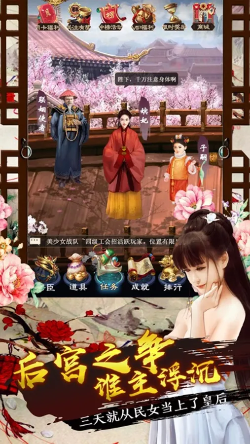红颜环绕养成系统,既爱江山也爱美人!健全的官职升迁系统,体验青云直上的快感,来一场精彩绝伦的明争暗斗吧!