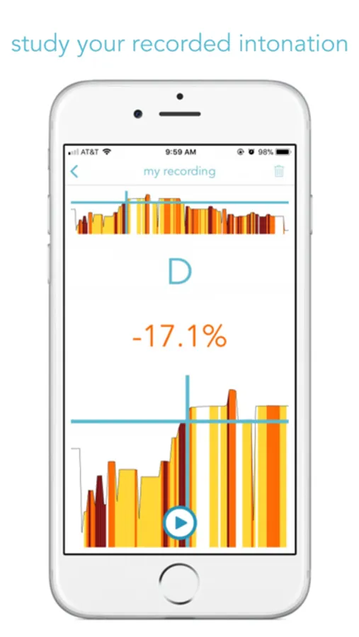Here's how it works: hz records you while you play, and displays a graph of your performance, with color-coded intonation, for you to analyze afterwards.