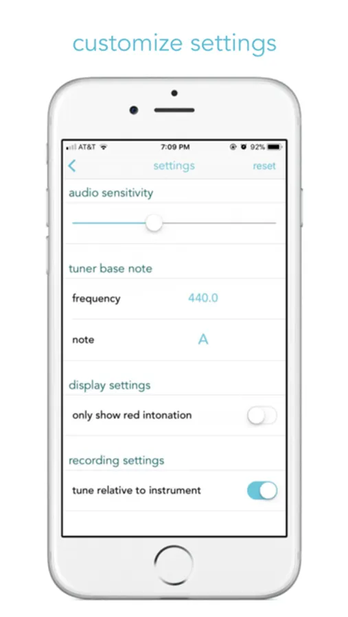 1. open the recording tuner and calibrate by holding a note you know is in-tune (this note will be used as a baseline for intonation in your performance)