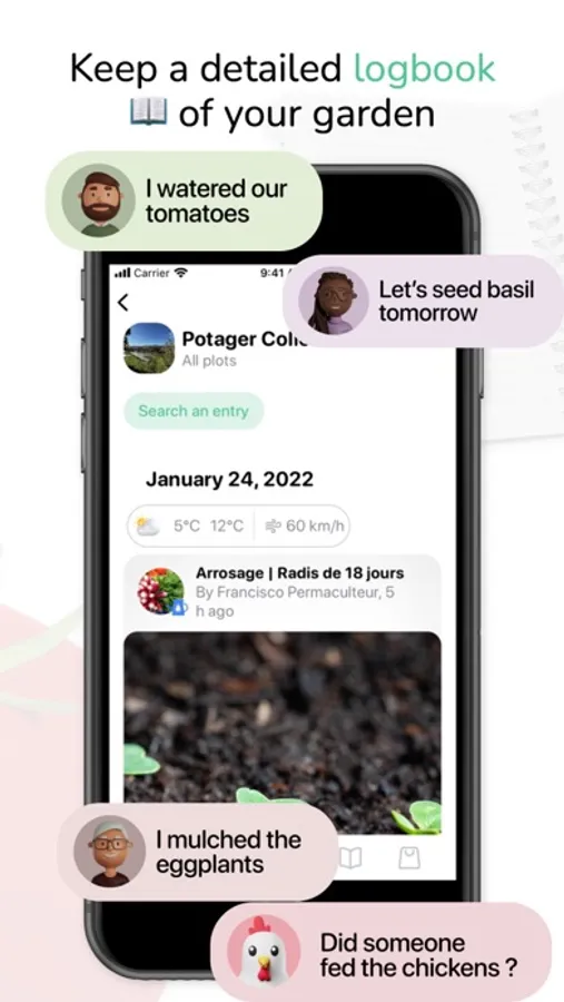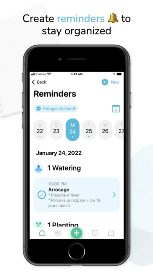 Moreover, if you are afraid of forgetting to sow on the right date or to water your salads, you can create reminders so that the app warns you, and these actions will be automatically recorded in your diary once validated.