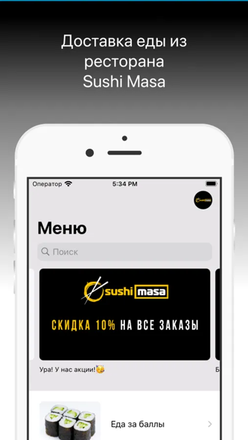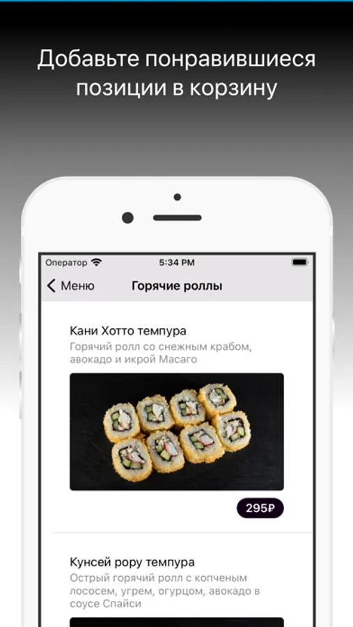 Как сделать заказ в приложении “Sushi Masa”: выберите понравившиеся позиции из меню, добавьте их в корзину и перейдите на экран оформления заказа (по нажатию на иконку корзины).
